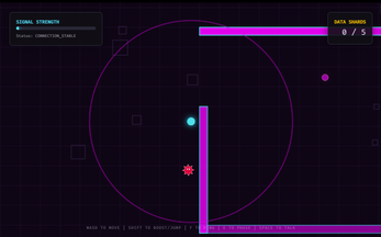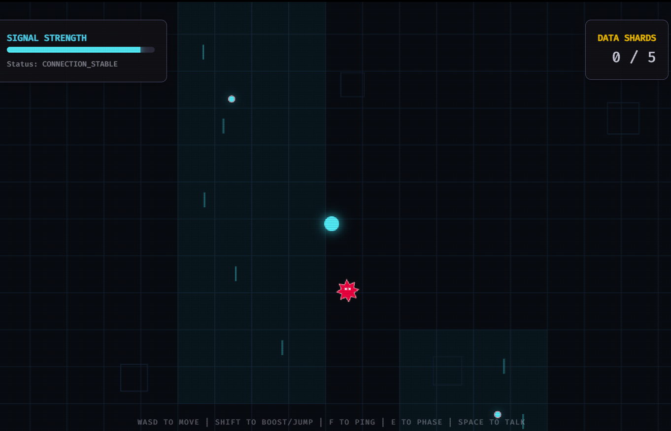 - System Ping (F): Emit a sonar pulse to reveal invisible platforms and hidden data paths.