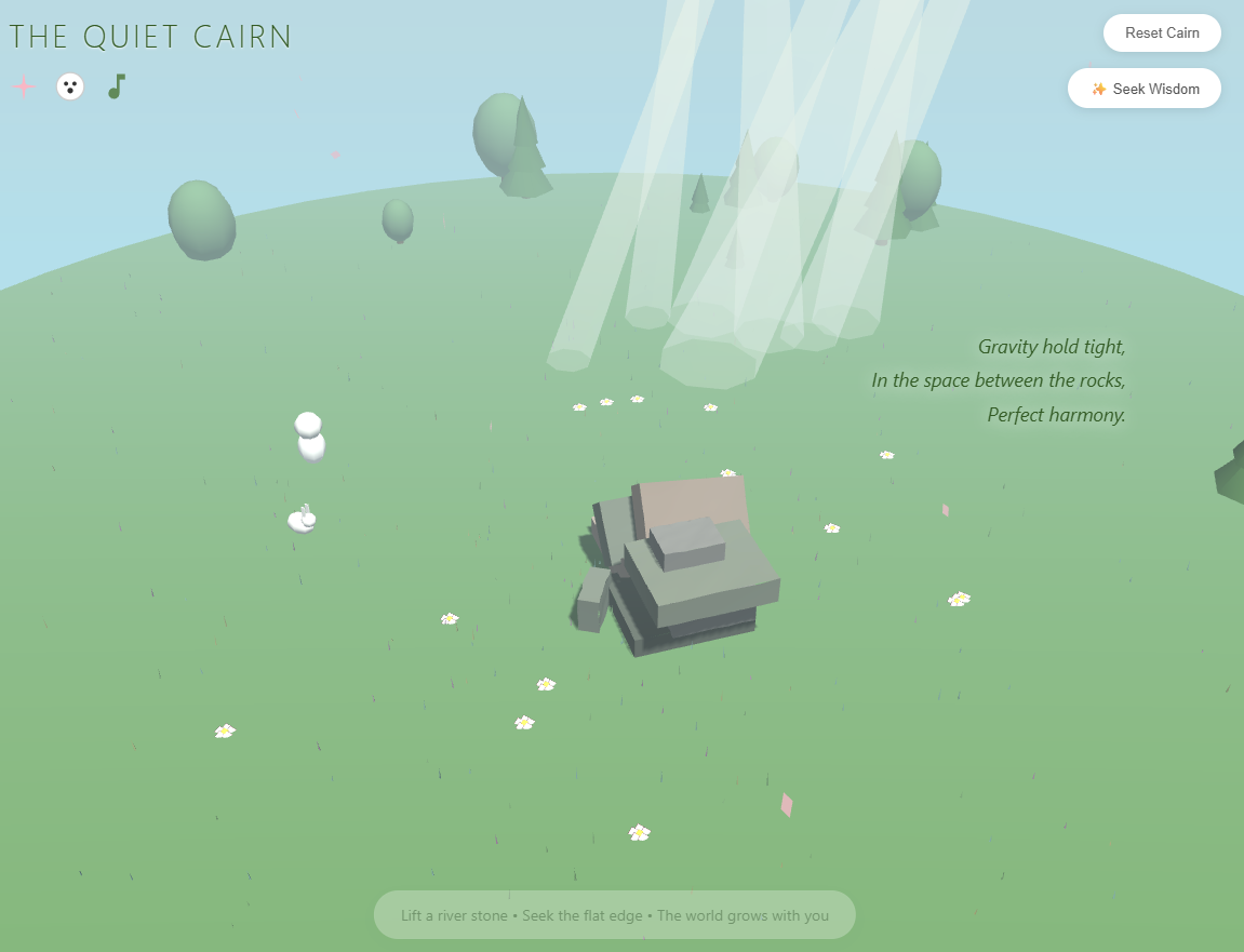 - Zen Physics: Carefully rotate and place smooth, river-worn stones. Feel the weight and balance of each rock as you build your cairn.